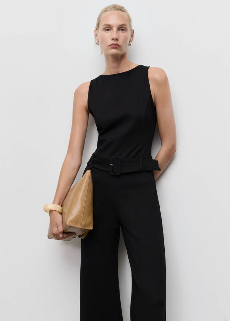 Long jumpsuit with belt and buckle