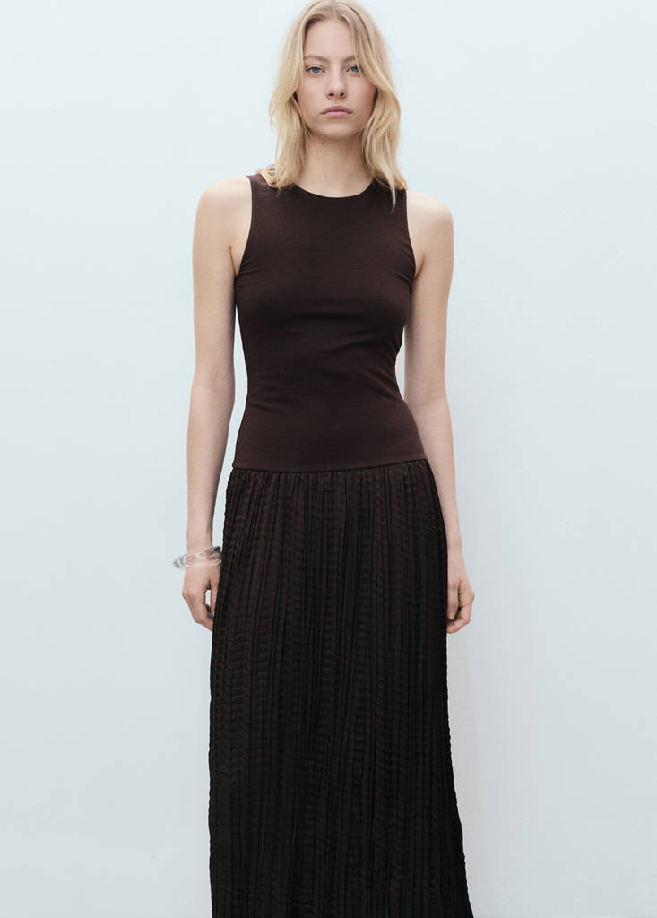 Modal and cotton blend fabric. Combined design. Long design. Straight design. Round neck. Sleeveless. No closure. Available Plus