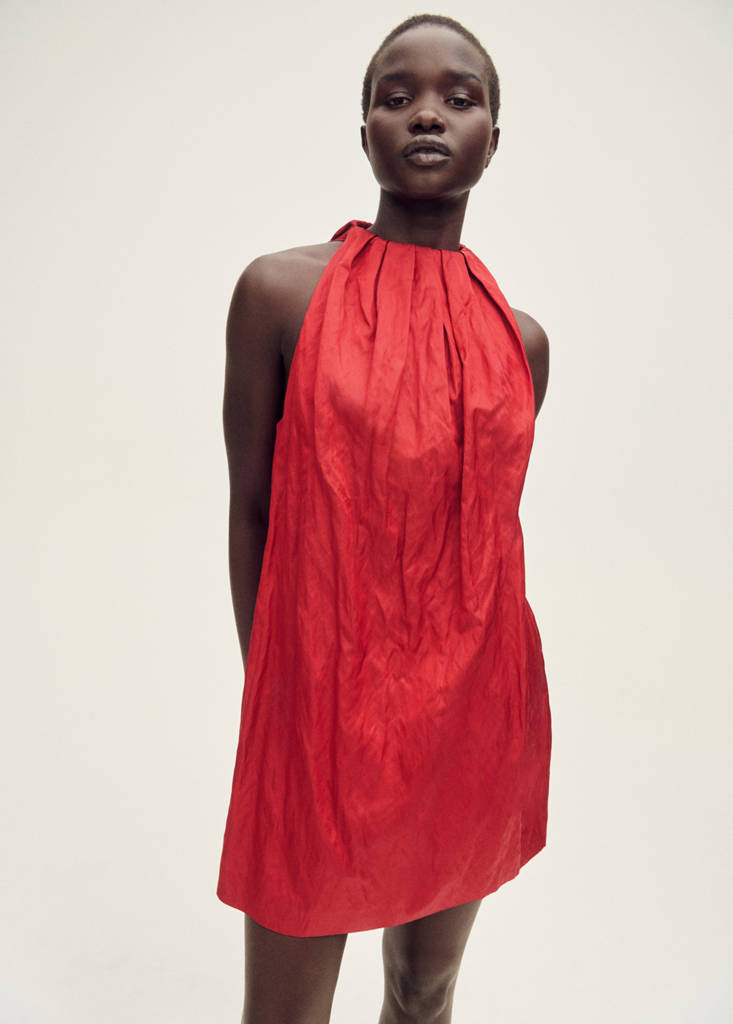 Cotton fabric. Short design. Straight design. Halter neck. Ruched neck. Sleeveless. Tie closure at the back. Selection Collection