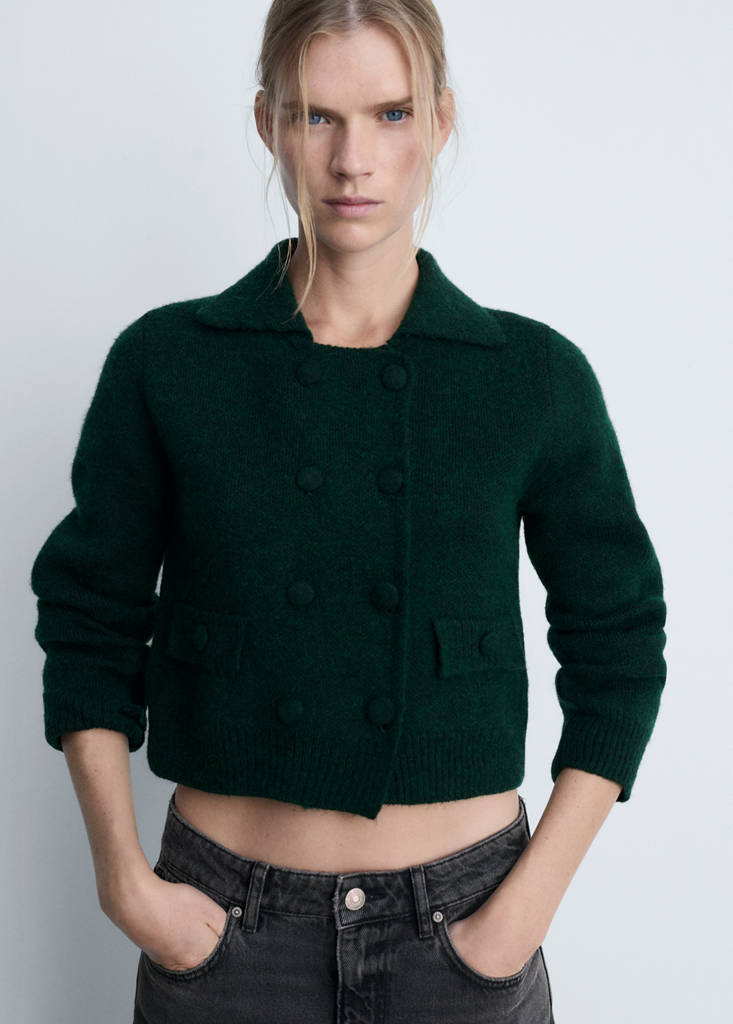 Double-breasted knitted jacket