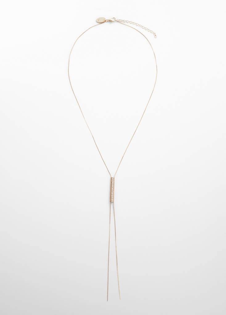 Long design. Decorative crystals details. Chain and lobster clasp closure