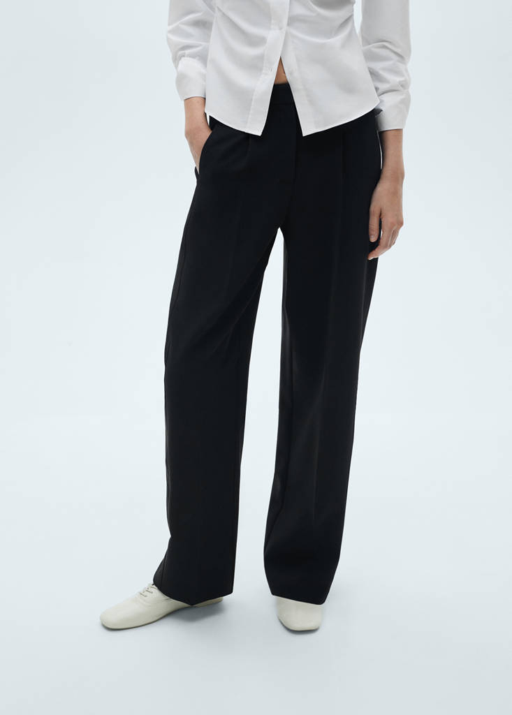 Long design. Straight design. Belt loops. Mid-rise. Lightweight fabric. Standard design. Two side pockets. Two welt pockets at the back. Concealed button, hook and zip fastening. Dart detail