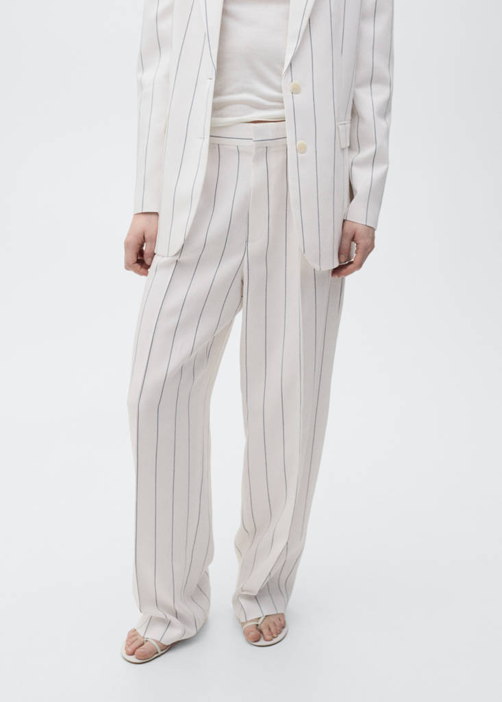 Suit style. Long design. Wide-leg design. Striped print. Mid-rise. Belt loops. Side pockets. Concealed button, hook and zipper front closure with placket. Total look