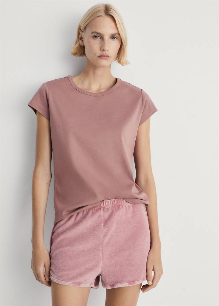 100% Cotton. Round neck. Short sleeves. Straight design. No closure. Standard design. Available in various colors. Pairs with more products from the collection