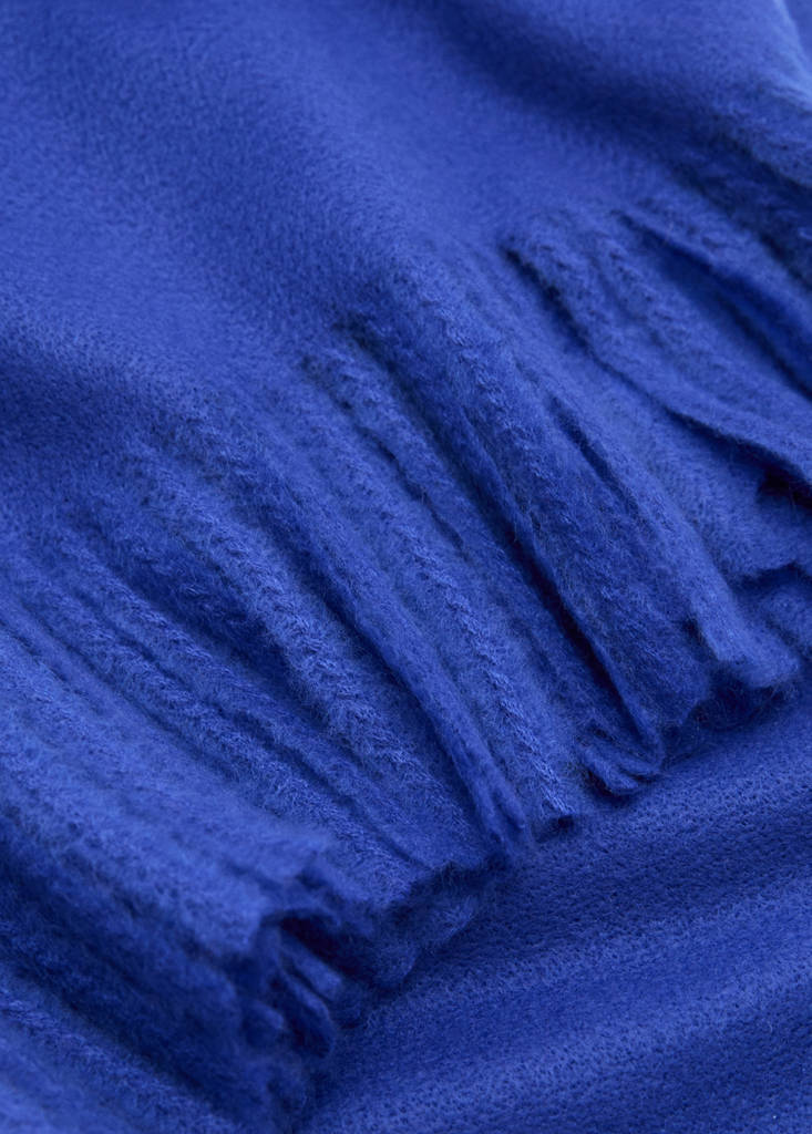 Fringed edge scarfInitial price struck through [US$ 45.99 ]US$ 45.99Current price [US$ 12.99 ]US$ 12.99-72%Select a colourBlueSelect your sizeOne sizeNot available. I want it!Notify meAdd to WishlistSee lookFree shipping to storeKnit fabric. Fringe finish. Knit fabric. Plain design. Standard design74.8x27.56 inDetails, composition and careStore availabilityMango StylistAsk about deliveries, returns and moreAssistant