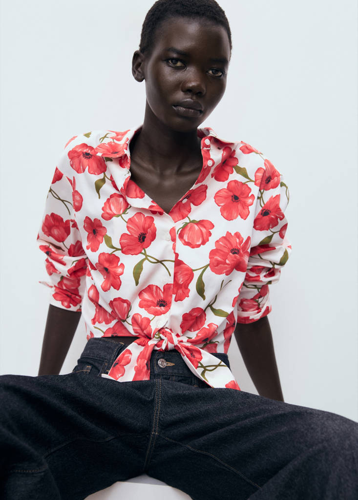 Floral-print poplin shirt