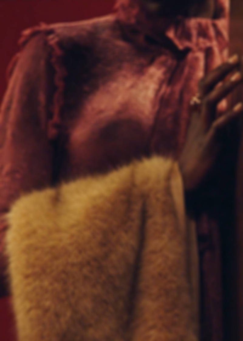 Crafted from lace fabric, this garment features a straight design with a ruff collar and long sleeves with frilled cuffs. It includes a bow at the neck and a rear zip fastening. It has an inner lining.