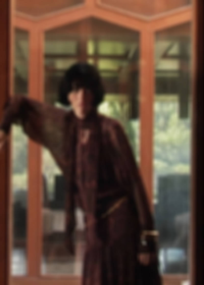 Semi-transparent fabric. Metallic thread. Paisley design. Straight design. V-neck. Long sleeves with buttoned cuffs. Concealed front button fastening. Online Exclusive