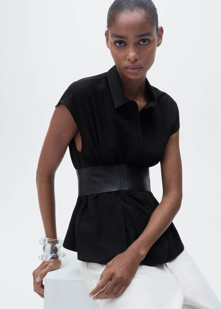 Short-sleeved pleated shirtCurrent price [US$ 59.99 ]US$ 59.99Select a colourBlackSelect your size0 (EUR XXS)Not available. I want it!2 (EUR XS)Not available. I want it!4 (EUR S)Not available. I want it!6 (EUR M)Not available. I want it!8 (EUR L)Not available. I want it!10 (EUR XL)Not available. I want it!12 (EUR XXL)Not available. I want it!DimensionsNotify meAdd to WishlistSee lookFree shipping to storeFitted design. Shirt collar. Short sleeves. Dart detail at the waist. Front button closure. Available PlusDetails, composition and careStore availabilityMango StylistAsk about deliveries, returns and moreAssistant