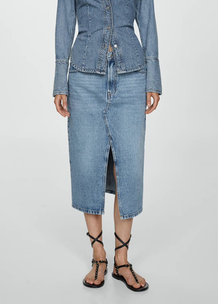 Denim midi-skirt