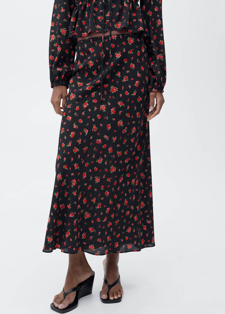 Long floral flared skirt