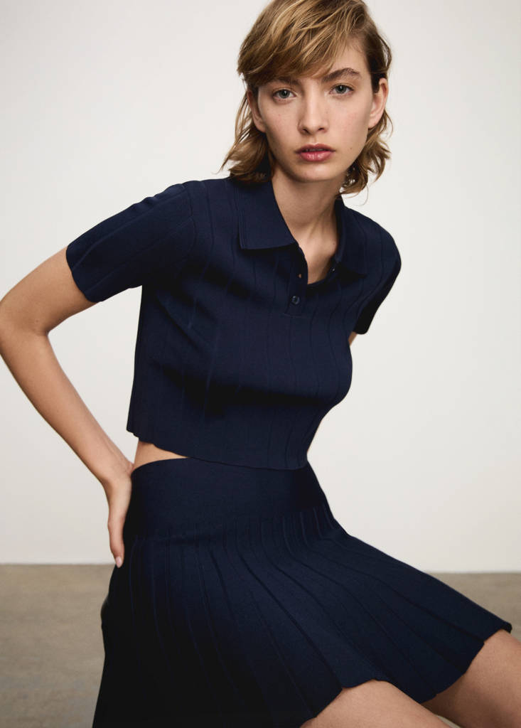 Fine knit fabric. Patterned design. Short design. High-rise. No closure. Total look