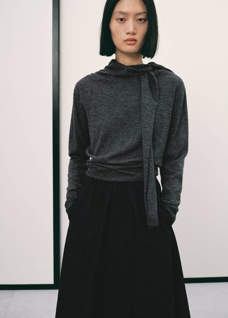 Fine knit fabric. Straight design. Combined design. Round neck. Long sleeves