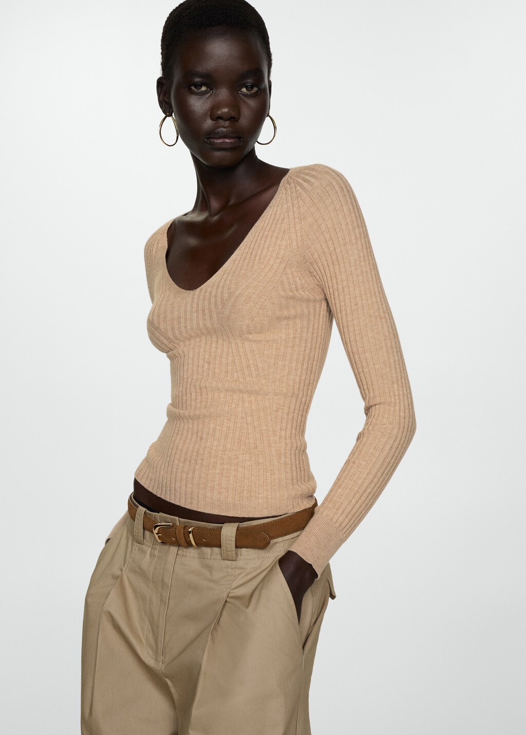 V-neck ribbed knit sweaterCurrent price [US$ 39.99 ]US$ 39.99Select a colourSandThe model is wearing size S and is 5'11" tall.Select your sizeXSNot available. I want it!SNot available. I want it!MNot available. I want it!LNot available. I want it!XLNot available. I want it!Size guideNotify meAdd to WishlistSee lookFree shipping to storeSee availability in storeDescriptionFine knit fabric. Ribbed design. V-neck. Long sleeves. No closure. Office looks. Fitted design.See detailsSize guideShare
