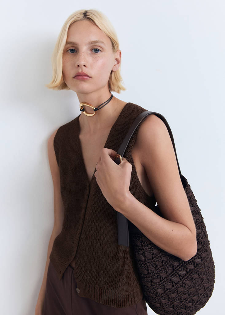 Knitted vest with lace patternCurrent price [US$ 69.99 ]US$ 69.99Select a colourChocolateThe model is wearing size S and is 5'10" tall.Select your sizeXSNot available. I want it!SNot available. I want it!MNot available. I want it!LNot available. I want it!XLNot available. I want it!DimensionsNotify meAdd to WishlistSee lookFree shipping to storeOpenwork knit. Straight design. V-neck. Sleeveless. Wide straps. Button closure at the frontDetails, composition and careStore availabilityMango StylistAsk about deliveries, returns and moreAssistant