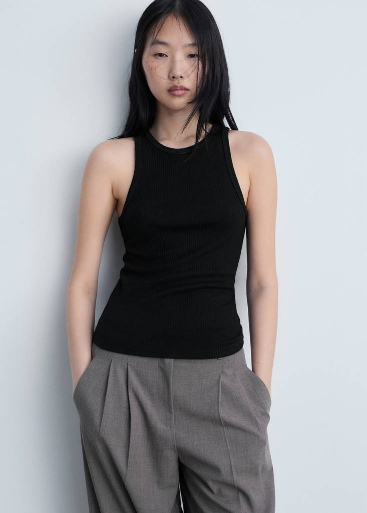 Fine ribbed knit topCurrent price [US$ 49.99 ]US$ 49.99Select a colourBlackThe model is wearing size S and is 5'7" tall.Select your sizeXSNot available. I want it!SNot available. I want it!MNot available. I want it!LNot available. I want it!DimensionsNotify meAdd to WishlistSee lookFree shipping to storeCable knit fabric. Slim fit. Round neck. Sleeveless. No closureDetails, composition and careStore availabilityMango StylistAsk about deliveries, returns and moreAssistant