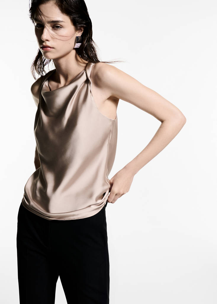 Draped neck satin top
