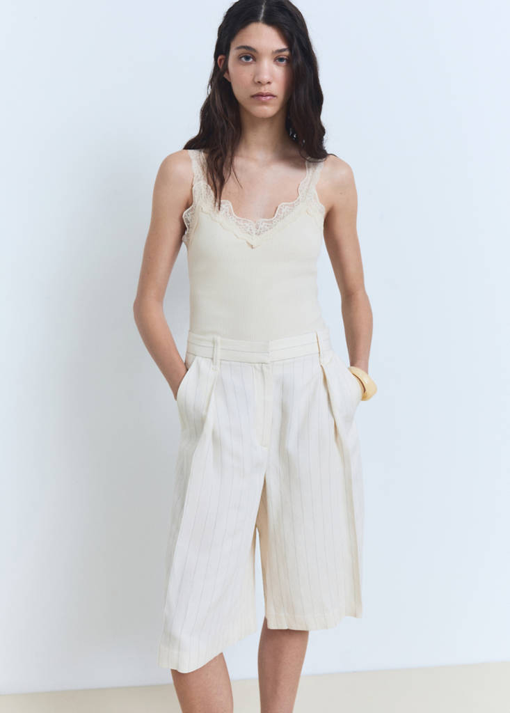 Fitted top with lace necklineCurrent price [US$ 29.99 ]US$ 29.99Select a colourOff WhiteThe model is wearing size S and is 5'10" tall.Select your sizeXXSNot available. I want it!XSNot available. I want it!SNot available. I want it!MNot available. I want it!LNot available. I want it!XLNot available. I want it!XXLNot available. I want it!DimensionsNotify meAdd to WishlistSee lookFree shipping to storeCotton fabric. Fitted design. V-neck. Lace detail. Sleeveless. Wide lace straps. No closureDetails, composition and careStore availabilityMango StylistAsk about deliveries, returns and moreAssistant