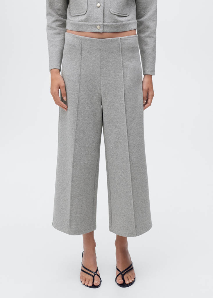 Cotton crop pantsCurrent price [US$ 79.99 ]US$ 79.99Select a colourMedium Heather GreyThe model is wearing size S and is 5'11" tall.Select your sizeXSNot available. I want it!SNot available. I want it!MNot available. I want it!LNot available. I want it!XLNot available. I want it!DimensionsNotify meAdd to WishlistSee lookFree shipping to storeCotton fabric. Crop design. Straight design. Mid-rise. Stitching detail. Elastic waistband. No closure. Total lookDetails, composition and careStore availabilityMango StylistAsk about deliveries, returns and moreAssistant