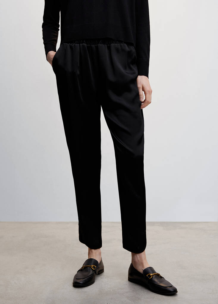 Satin pants with elastic waist