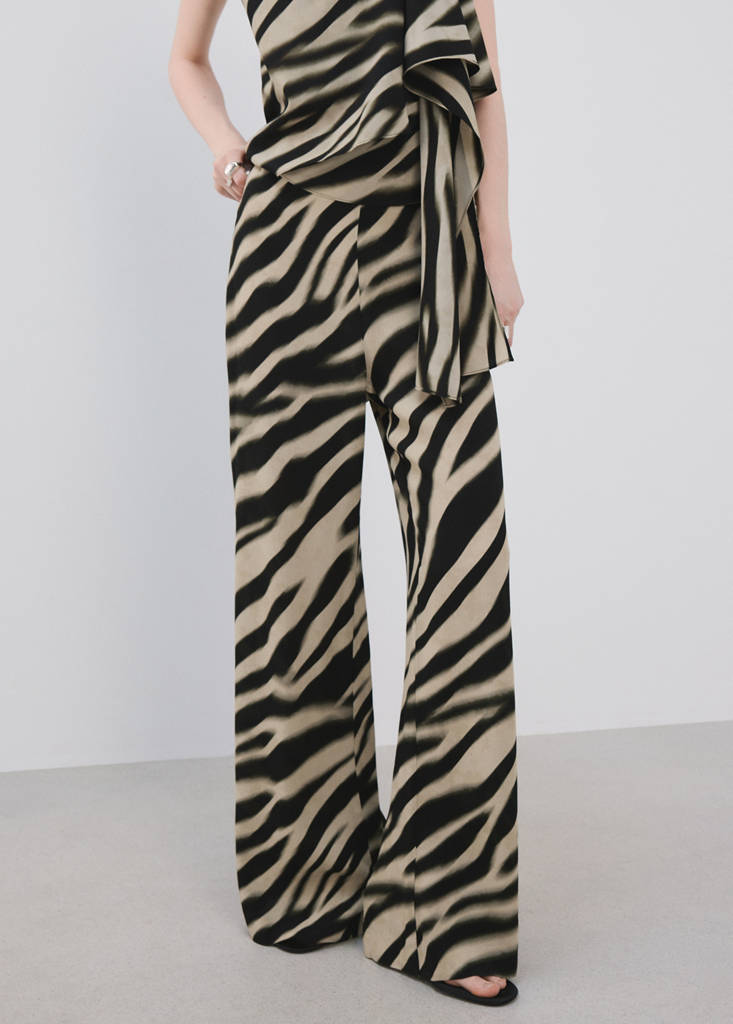 Straight design. Zebra print. Mid-rise. Adjustable waist. Total look