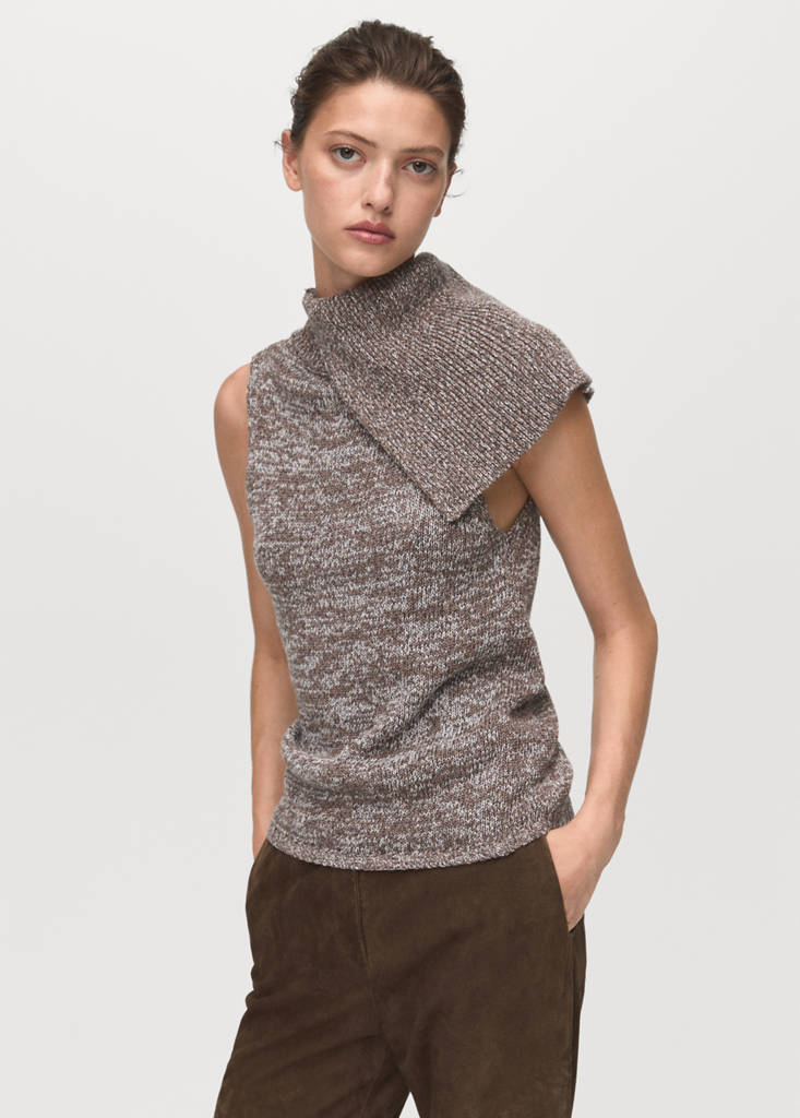 Vest with mottled wrap collar