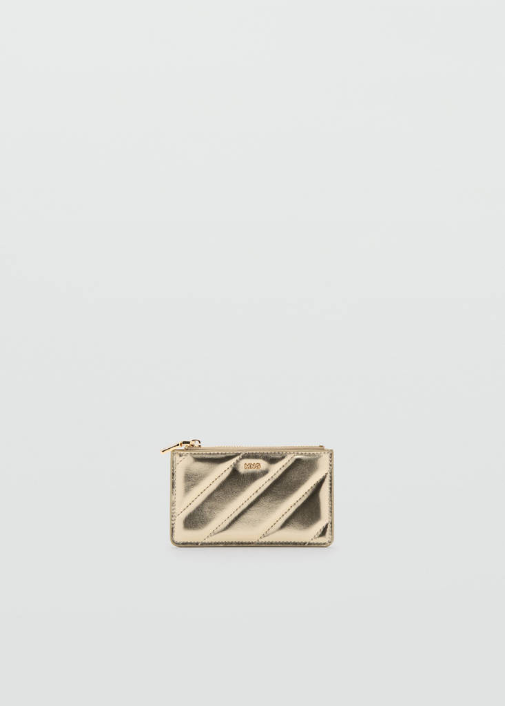 Small size. Quilted design. Metallic. Five card slots. Zipper closure