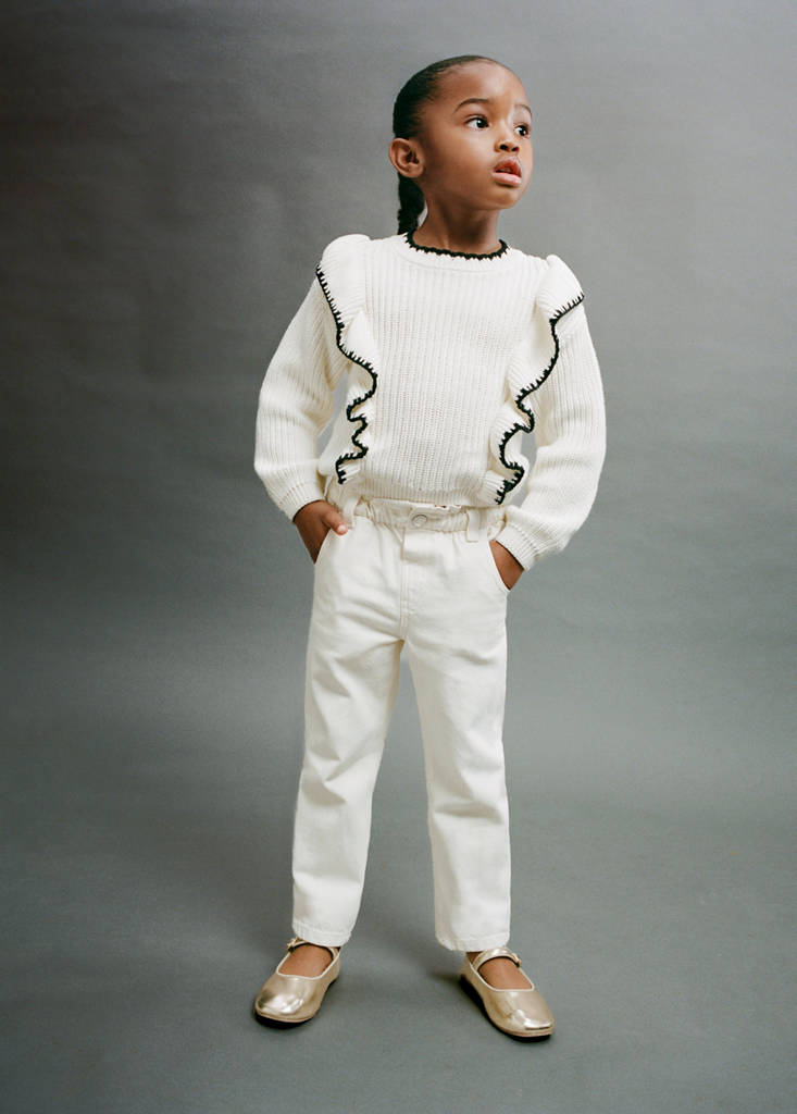 Tejido de algodón estilo tejano vaquero. Silueta Paperbag. Diseño recto. Diseño largo. Dos bolsillos laterales. Dos bolsillos de parche en la parte posterior. Cintura con goma elástica. Trabillas. Cierre de un botón