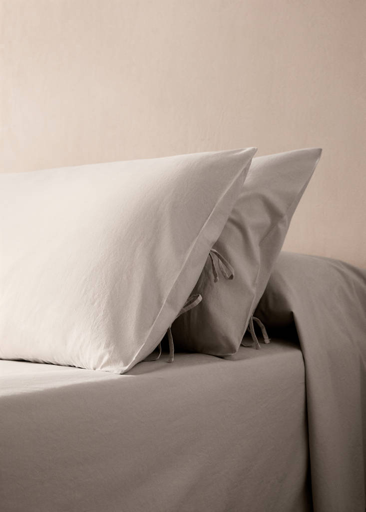 Funda almohada algodón lavado lazos 45x110 cm