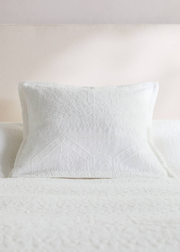 100% Algodón. Tamaño: 50x50cm. 300 hilos. Dobladillo: 2 cm. Funda cojín con diseño jacquard y textura mosaico de estilo romántico. Combina con su colcha a juego. No incluye relleno
