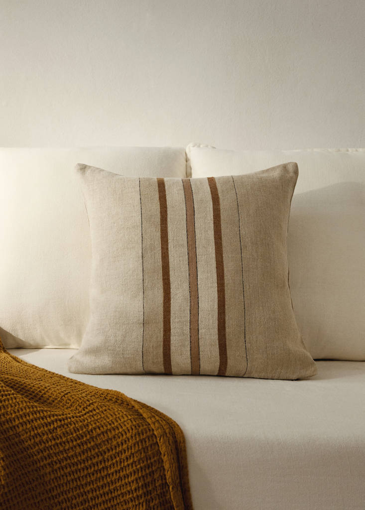 Calidad premium. 100% Lino. Tamaño: 50x50cm. Raya tejida bicolor. Crea un ambiente cálido y acogedor. Sin relleno