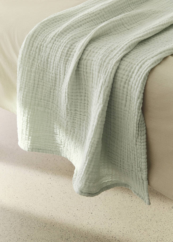 100% Algodón. Tamaño: 70x100 cm. Tejido garment dyed. Algodón gasa. Manta infantil confeccionada 100% en algodón, lo que asegura suavidad y comodidad para el uso diario