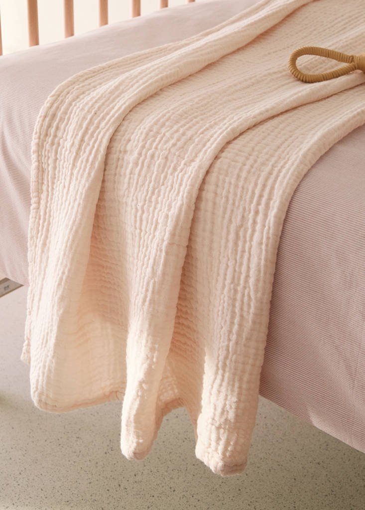 100% Algodón. Tamaño: 70x100 cm. Tejido garment dyed. Algodón gasa. Manta infantil confeccionada 100% en algodón, lo que asegura suavidad y comodidad para el uso diario