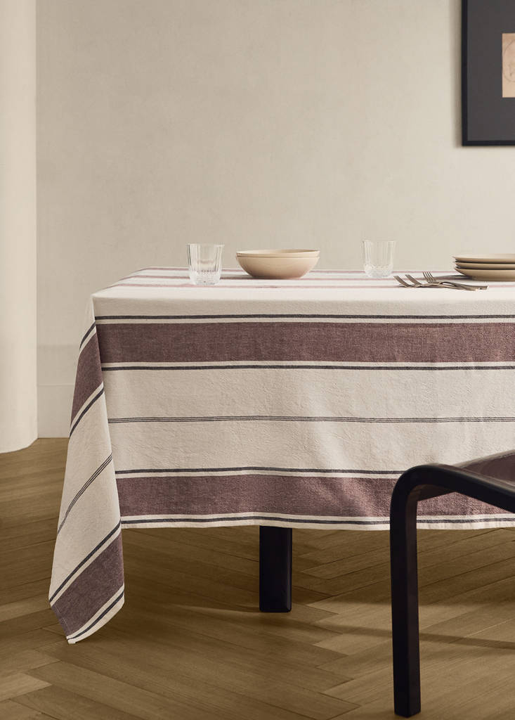 Mantel mezcla algodón y lino. De 8 a 10 comensales. Tamaño: 150x350 cm. Diseño de rayas. Fresco, suave, duradero, transpirable y versátil. Diseño elegante y minimalista, ideal para cualquier mesa. Combina los diferentes tamaños