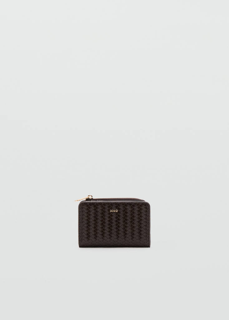 Diseño trenzado. Tamaño pequeño. Múltiples ranuras para tarjetas. Bolsillo interior. Cierre de cremallera. Logo en relieve