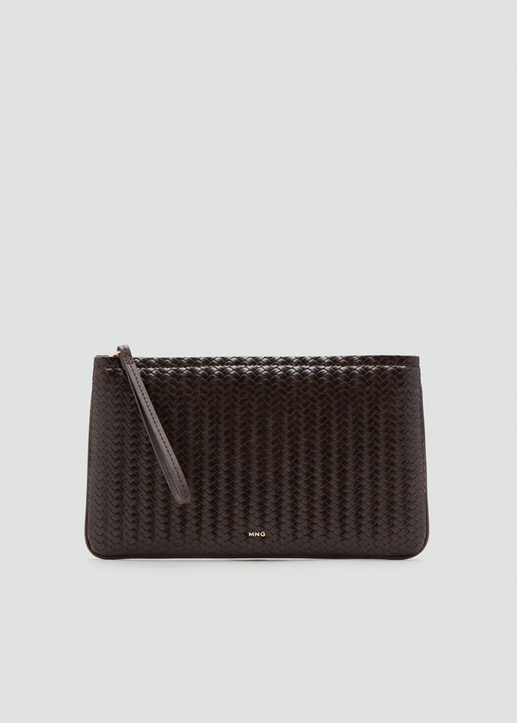 Diseño trenzado. Asa de mano. Logo en relieve. Cierre de cremallera