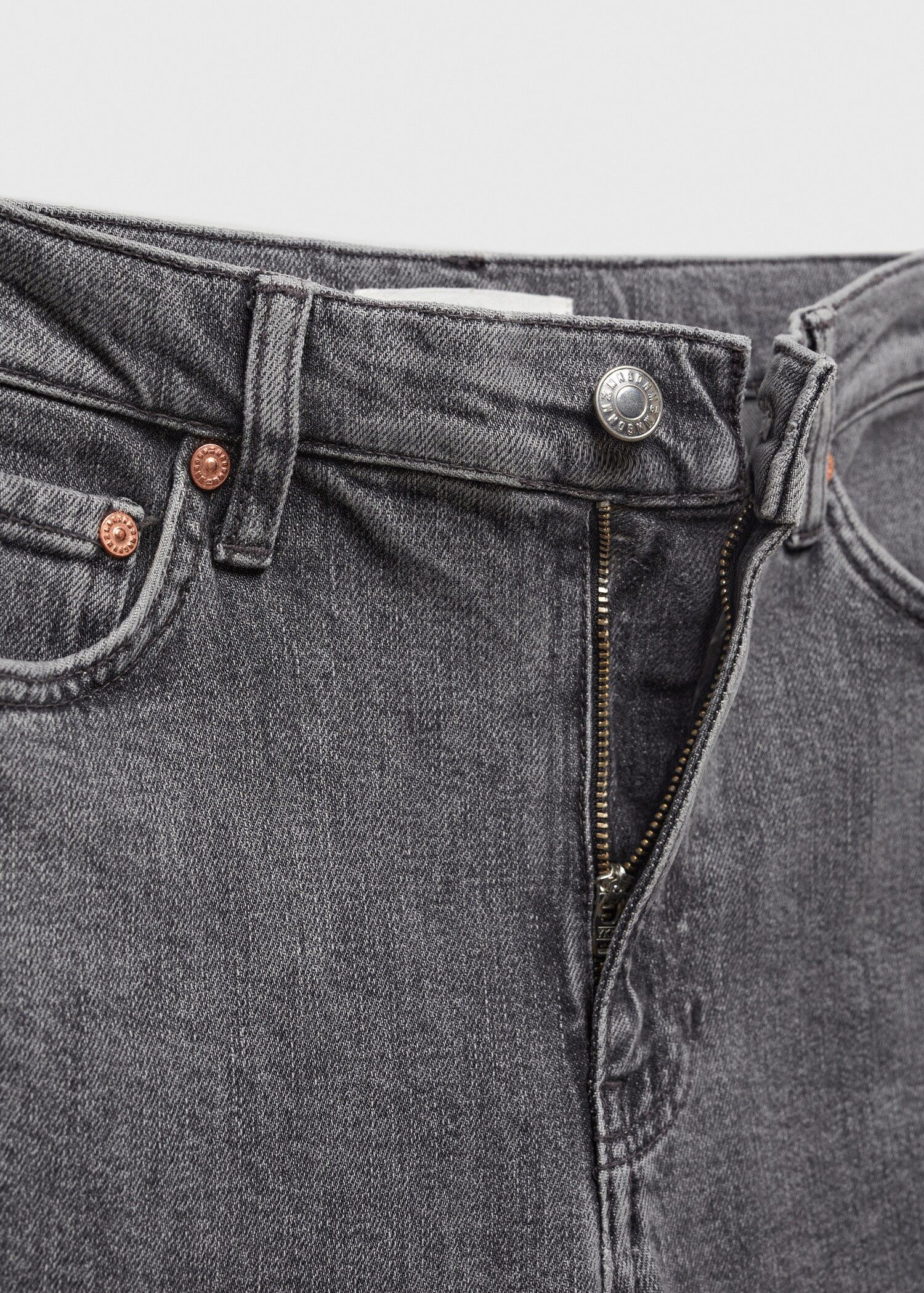 Tejido de algodón estilo tejano vaquero. Tejido elástico. Diseño crop. Corte slim. Tiro medio. Trabillas. Cinco bolsillos. Cierre de cremallera y botón. Largo interior 68 cm. La modelo mide 178 y lleva una talla 36.
