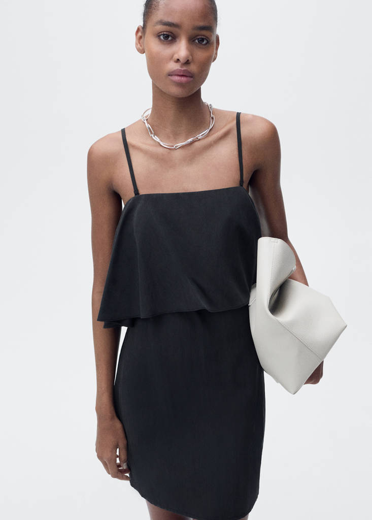 Tejido de lyocell. Diseño corto. Diseño entallado. Cuello escotado. Sin mangas. Tirantes finos. Cierre de cremallera en la parte posterior