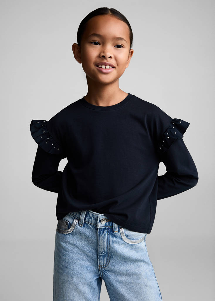 Camiseta volantes tachuelasPrecio actual [US$ 25.99 ]US$ 25.99Selecciona un colorAzul marino oscuroSelecciona tu talla5-6 años (45.75 in)No disponible ¡Lo quiero!7-8 años (50.5 in)No disponible ¡Lo quiero!9-10 años (55 in)No disponible ¡Lo quiero!11-12 años (59.75 in)No disponible ¡Lo quiero!13-14 años (64.5 in)No disponible ¡Lo quiero!MedidasAvísameAñadir a FavoritosVer lookEnvío gratis a tiendaVuelta a clase. 100% Algodón. Diseño recto. Cuello redondo. Manga larga. Tachuelas decorativas. Detalle de volantesDetalles, composición y cuidadosDisponibilidad en tiendaMango StylistPregunta por envíos, devoluciones y másAssistant