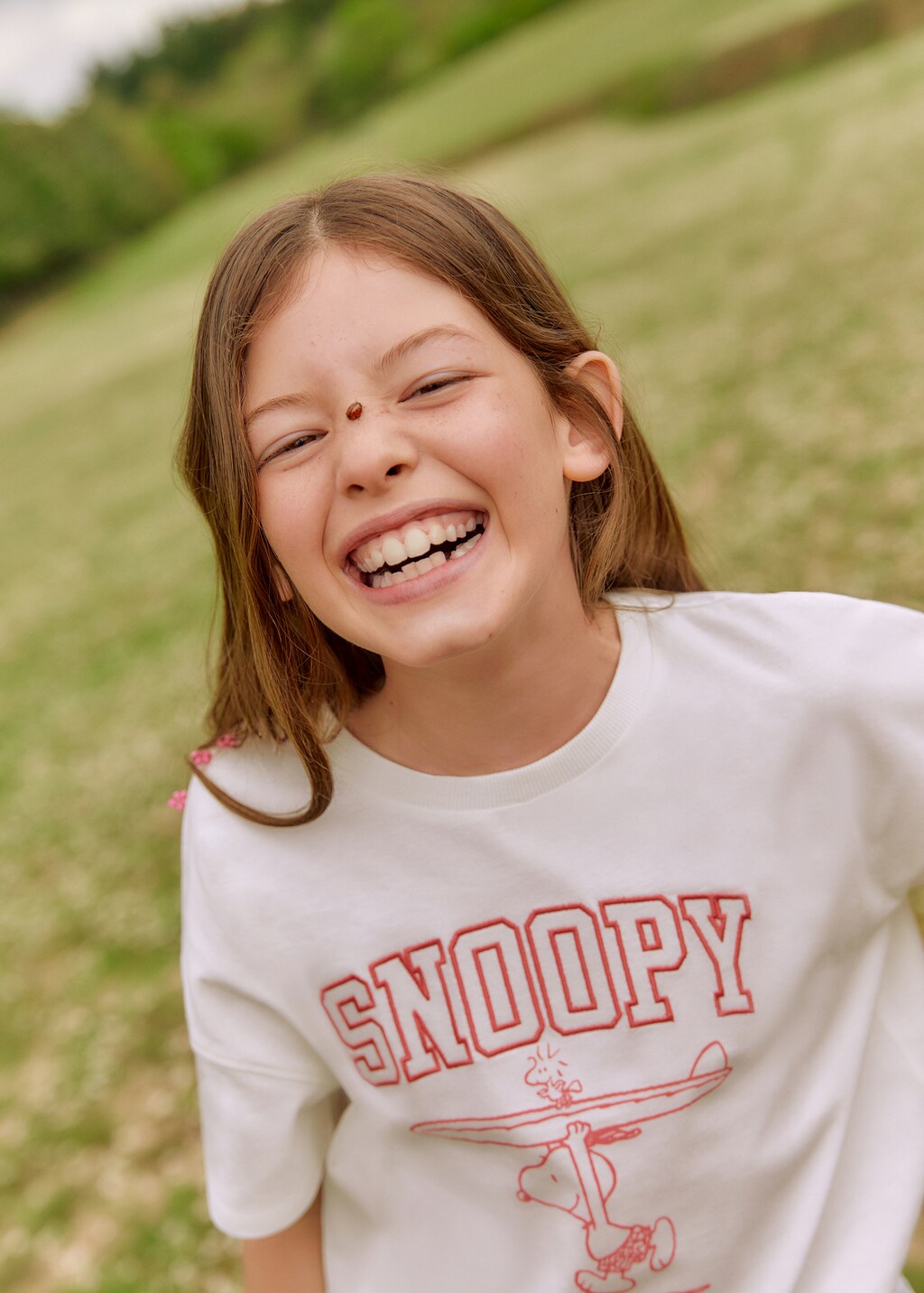 100% algodón. Diseño recto. Estampado Snoopy. Cuello redondo. Manga corta.