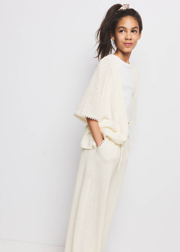Tejido de punto. Diseño kimono. Manga larga. Cierre cruzado. Cierre de lazo. Ribetes decorativos. Total look