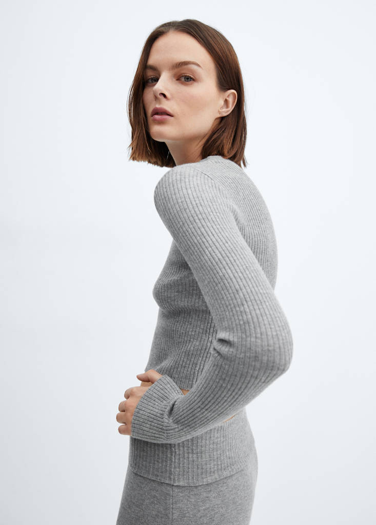 Punto de canalé. Diseño corto. Diseño recto. Cuello redondo. Manga larga. Sin cierre. Total look
