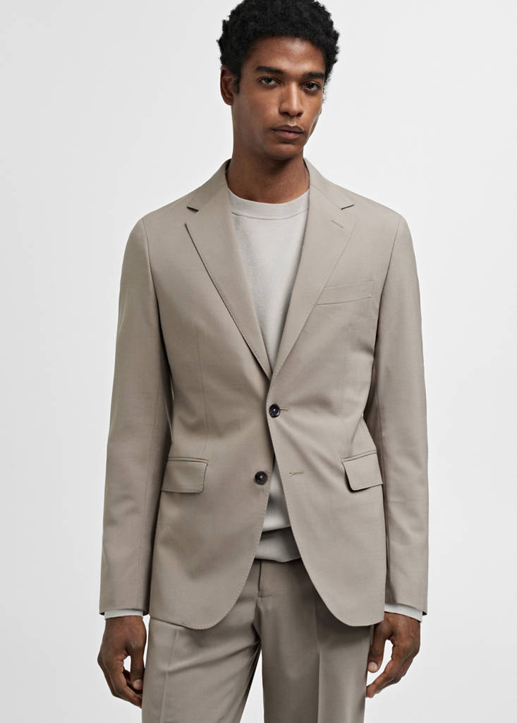Performance Collection. Machine washable. Four way stretch: elasticity in all directions. Plus comfort in your daily life thanks to its flexibility. Slim fit. Wool mix fabric. Lapel with notch. Chest welt pocket. Two patch pockets at the front. Double back slit. Straight hem. Thermoregulating: This fabric offers optimal breathability to keep you at a stable temperature. Long buttoned sleeves. Front closure with buttons