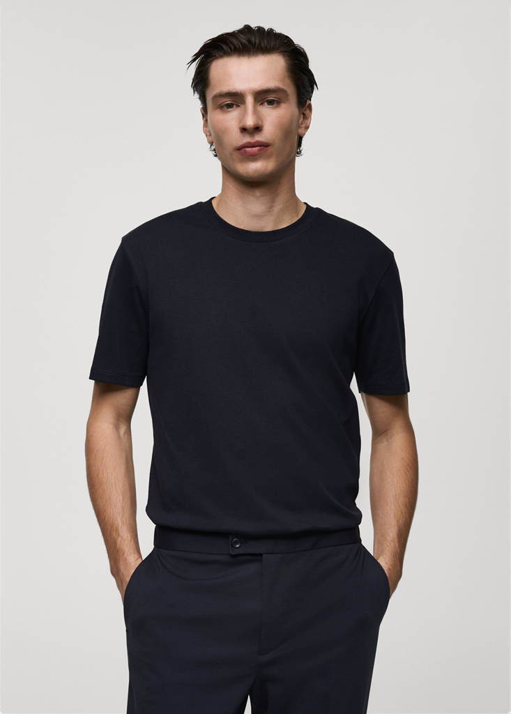 The colour black is exclusively online. Medium weight. Regular fit. 100% Cotton. Round neck. Short sleeves. Straight hem. ESSENTIALS: Made to last. The sky blue and black models are online exclusives