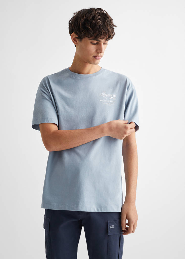 Straight design. Printed message. Oversized design. Round neck. Short sleeves