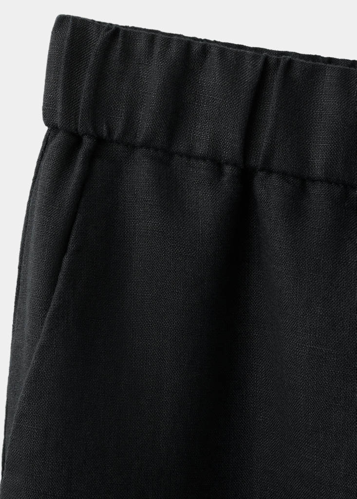 100% linen fabric. Straight design. Elastic waist with adjustable drawstring. Front closure with buttons. Inner lining