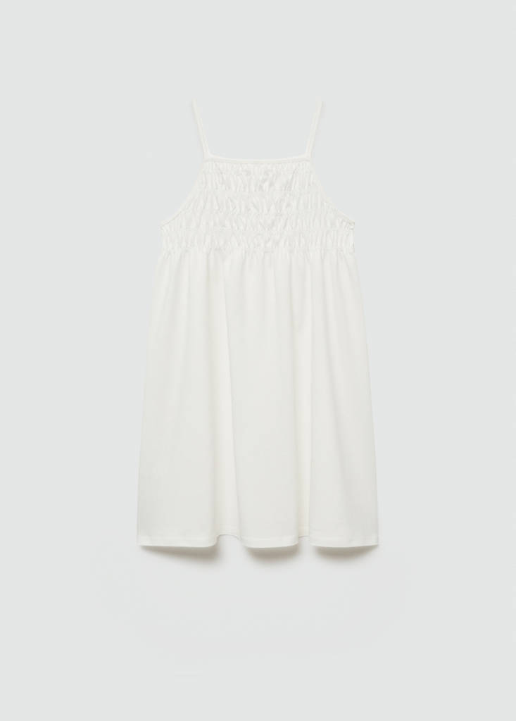 Gathered details dressCurrent price [đ 799,000 ]đ 799,000Select a colourOff WhiteSelect your size5-6 years (116cm)7-8 years (128cm)9-10 years (140cm)11-12 years (152cm)13-14 years (164cm)Size guideAdd to WishlistSee lookFree delivery to storeSee availability in storeDescriptionStraight design. Short design. Straight collar. Ruched panel. Thin straps. Sleeveless. This garment is also available in Baby Girl´s collection.See detailsItem qualitiesRecycled cottonAt least 20%This fibre is obtained from pre- and post-consumer textile waste that is transformed into new fabrics.Share