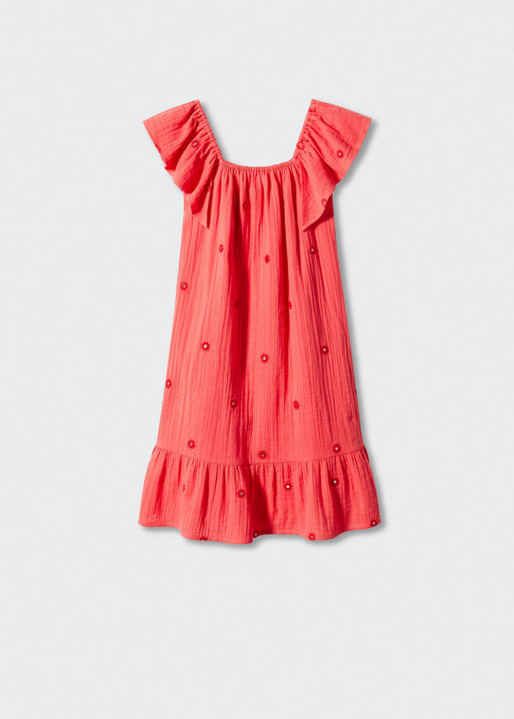 Print. Frill on the bottom. Ruffled straps. Square neckline. Sleeveless