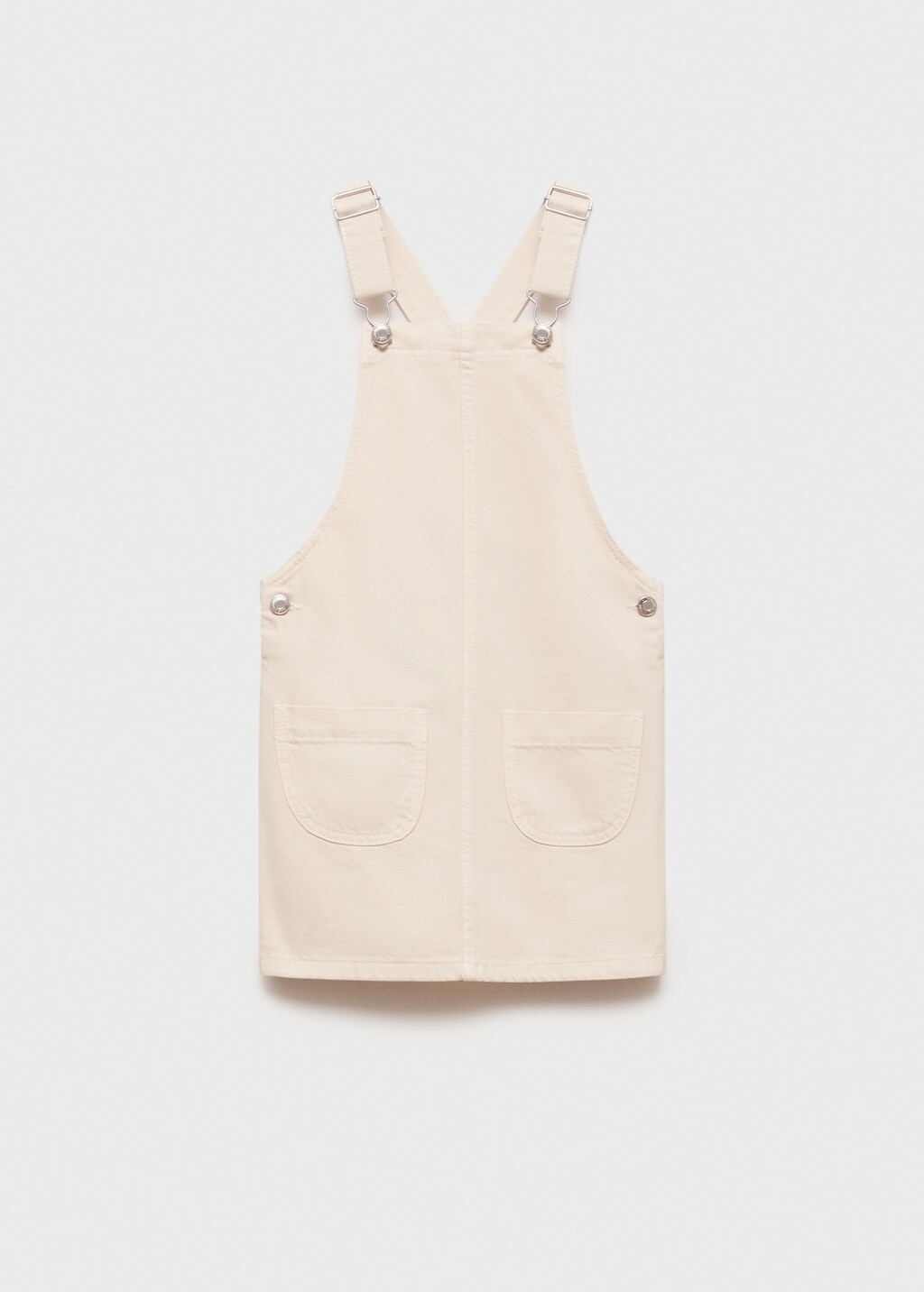 Straight Design. Short design. Two front pockets. Adjustable straps. Straps with button closure. Button up.