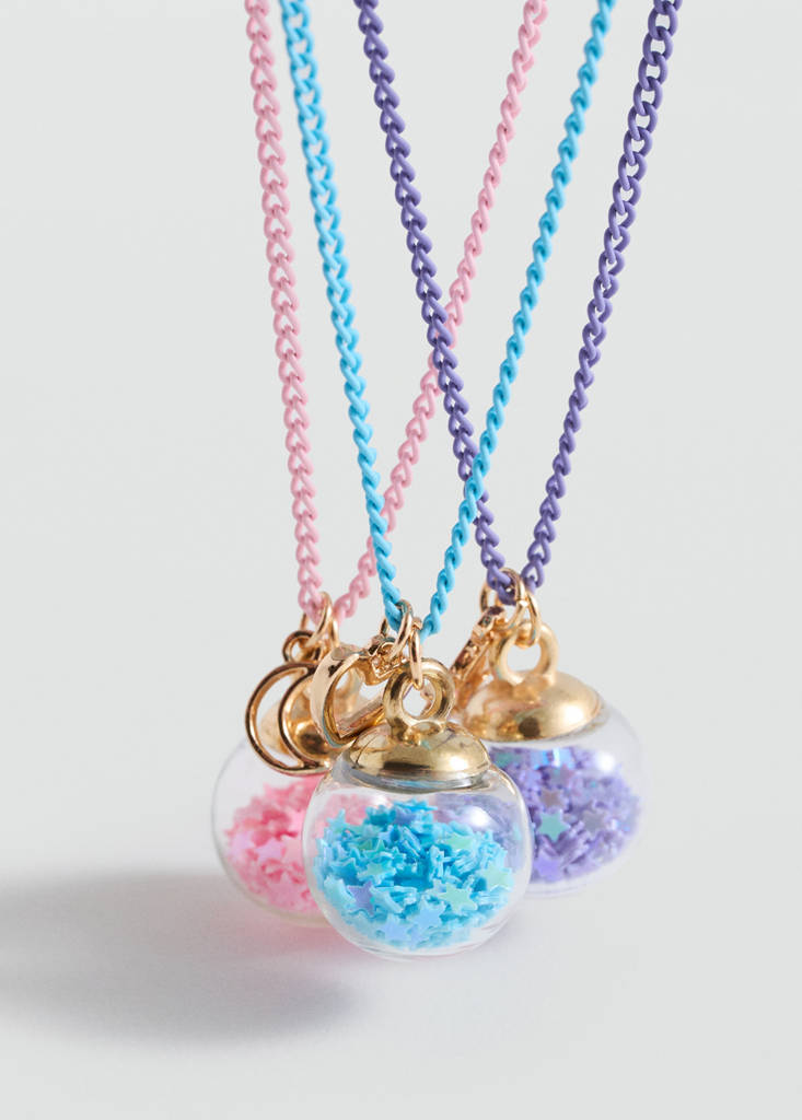 Chain design. Multicolour design. Star pendant. Moon pendant. Heart pendant. Zip and carabiner fastening